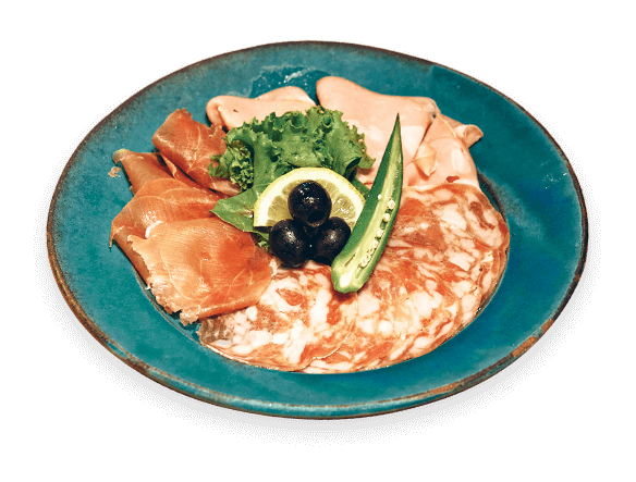 ソーセージ、フレッシュサラダ、 その他、ハムの盛り合わせなど、